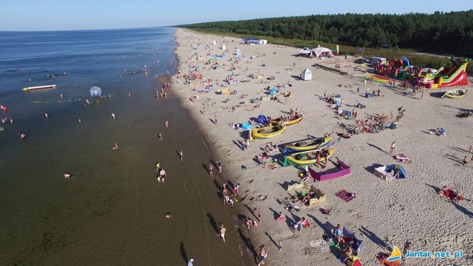 Jantar to przymorska wioska wypoczynkowa na Mierzei Wiślanej, położona między miejscowościami Mikoszewo i Junoszyno. W wakacje Jantar zamienia się w turystyczny kurort. Odbywa się tutaj dużo koncertów, imprez, turniejów plażowej piłki siatkowej. Miejscowa plaża to chyba najszersza plaża na naszym wybrzeżu, pokryta żółtym, drobnym piaskiem, spotkamy tu także kolorowe łodzie rybaków. Latem działa na niej strzeżone kąpielisko o długości 200 metrów. Zlokalizowane jest ono pomiędzy zejściami nr 79 (koło ośrodka wypoczynkowego Jantar) i nr 78. Jedyną wadą jest dość duży tłok na plaży – cóż takie są prawa tłumnego wczasowiska.
